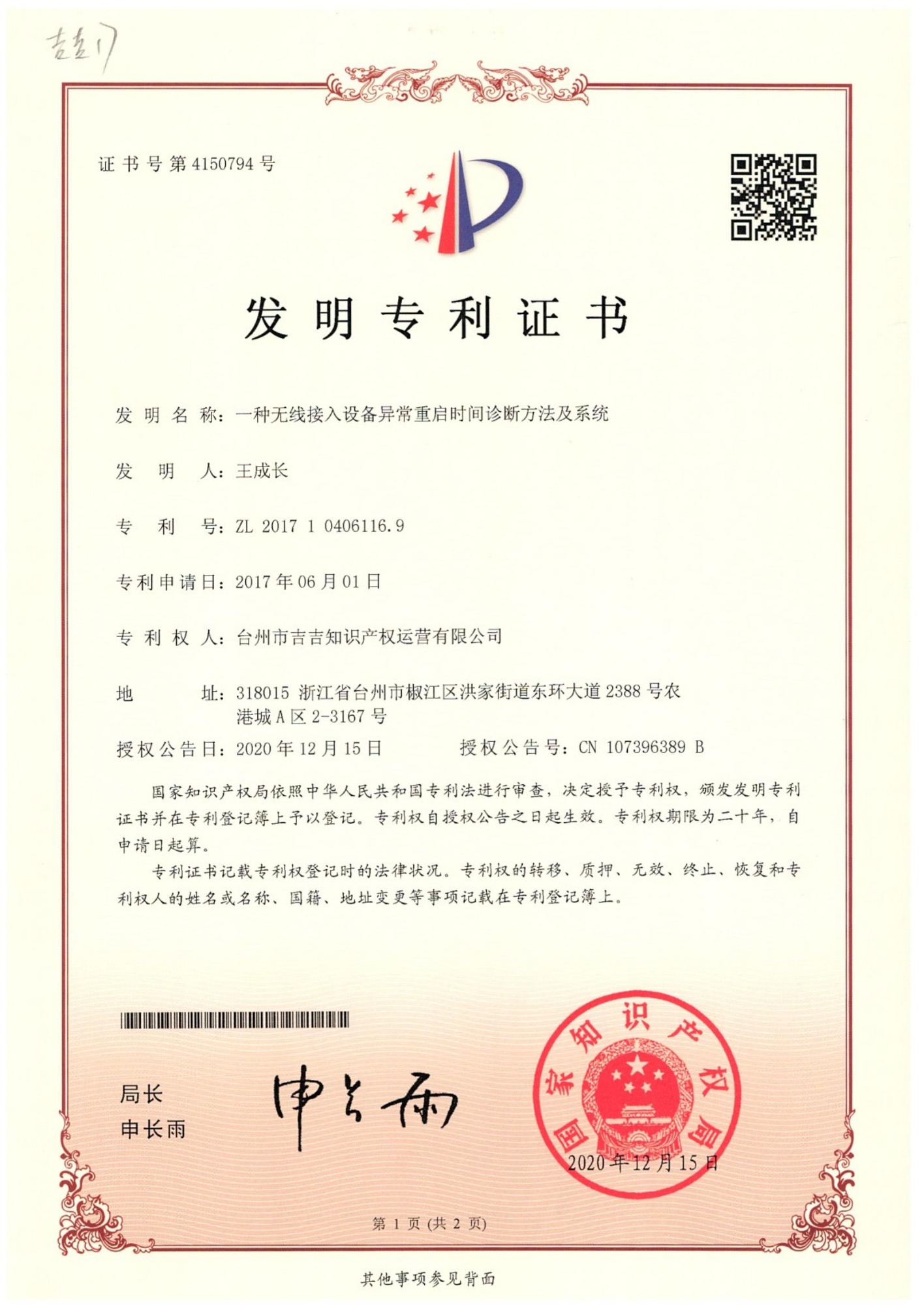 一種無(wú)線(xiàn)接入設(shè)備異常重啟時(shí)間診斷方法及系統(tǒng)專(zhuān)利證書(shū)