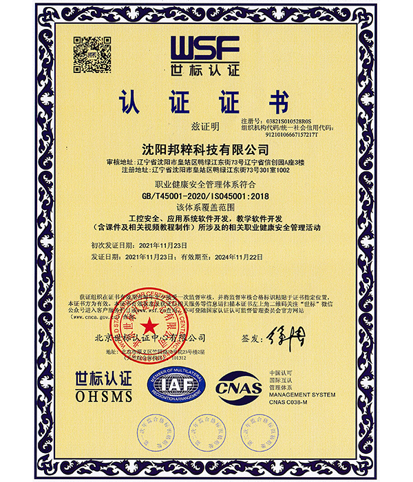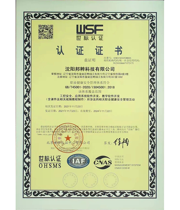 職業(yè)健康安全管理體系認(rèn)證證書(shū)